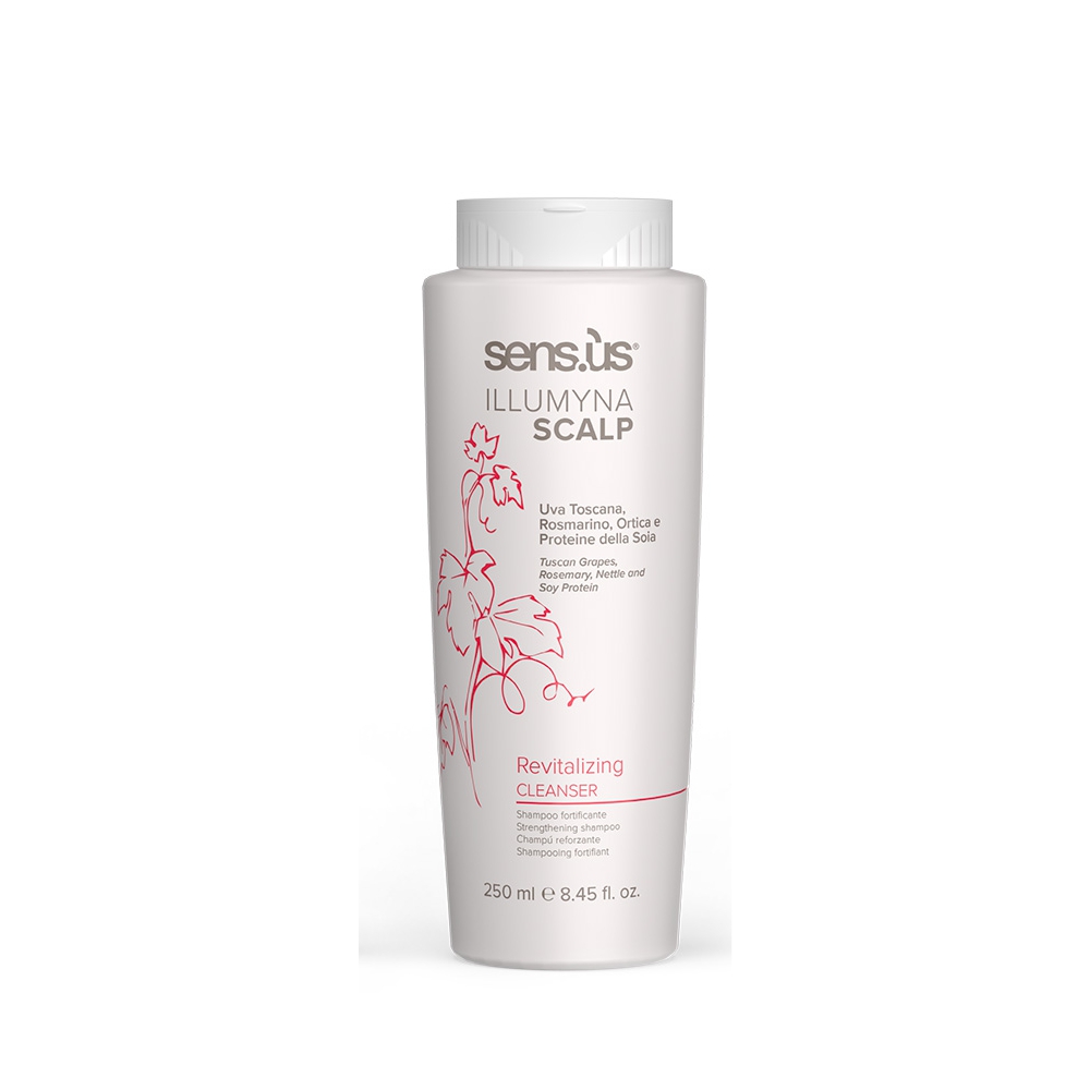 Revitalizing Cleanser: Shampoo fortalecedor para prevenção e tratamento da queda de cabelo, com extratos de uvas da Toscana, alecrim, urtiga e proteínas de trigo e soja.